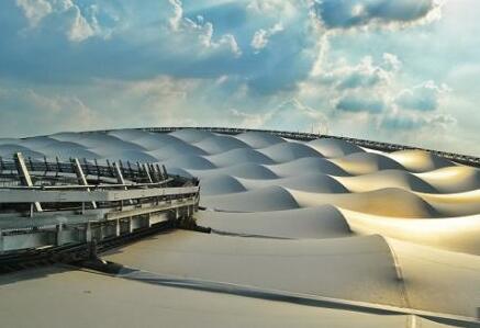 除了可以節(jié)約鋼材外,膜結構還可以從根本上克服傳統(tǒng)結構在無支撐、大跨度建筑上施工時所遇到的困難,造型也更為輕巧、節(jié)能環(huán)保。據(jù)程大勇介紹,這種特殊的膜國內研制水平目前尚不能達到工程設計要求,因此均由國外進口而來。每片膜面積700至950平米不等,平均價格在100萬元人民幣左右。