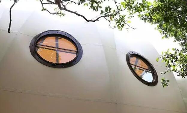 營地的主體建筑如同巨石般的亭子在場地的兩端有機(jī)地聚集在一起。大型開放的開口與較小的封閉圓頂相交,使空間更私人化。