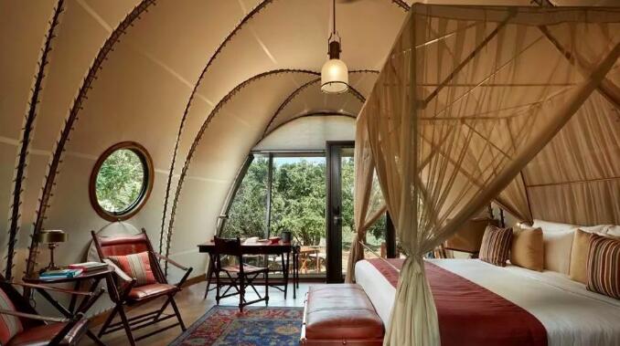 之所以稱之為“狂野”,是因?yàn)榫频昱徰爬瓏夜珗@,這里以密集出沒的錫蘭豹聞名。度假村的巨型帳篷設(shè)計(jì)成散落在附近巖石和巨石的形狀和顏色,加上豹紋印刷形狀的巧妙布局,暗示了該地區(qū)最著名的居住者。