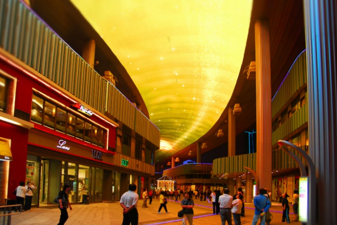 因成本高昂,施工難度等問題,“天幕”目前還沒有大規(guī)模入駐購物中心。相信隨著體驗(yàn)經(jīng)濟(jì)的盛行,我們會越來越多的在購物中心看到各種不同造型不同材質(zhì)的天幕。膜結(jié)構(gòu)應(yīng)用于天幕的建造也是近幾年出現(xiàn)的設(shè)計(jì)理念,膜結(jié)構(gòu)大跨度、透光性的這些特性大大降低了天幕建造的難度,也因此受到了開發(fā)商們的青睞,膜結(jié)構(gòu)天幕、甚至是可開合的智能化膜結(jié)構(gòu)天幕都已出現(xiàn)在人們的眼中而且未來將無限可期。