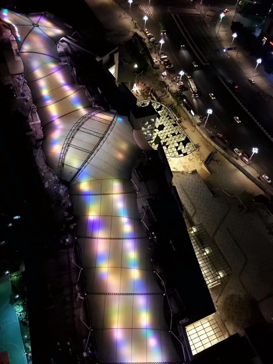 超萬平米大跨度膜結(jié)構(gòu)天幕,覆蓋整個中庭位置,拉膜結(jié)構(gòu)的張力跟脈絡(luò)展示了新材料的優(yōu)勢,在燈光的映襯下膜面色彩豐富,給您溫馨秀雅的感覺。該工程由本公司承建。