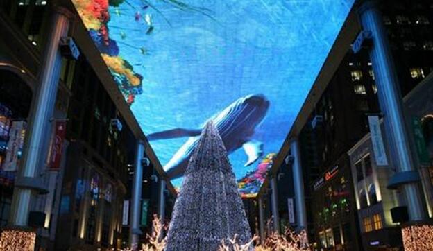 現(xiàn)在有很多商業(yè)街,如購物中心、步行街等都能采用天幕投影來提高整個(gè)區(qū)域氛圍,也是一種很好吸客宣傳方式。
