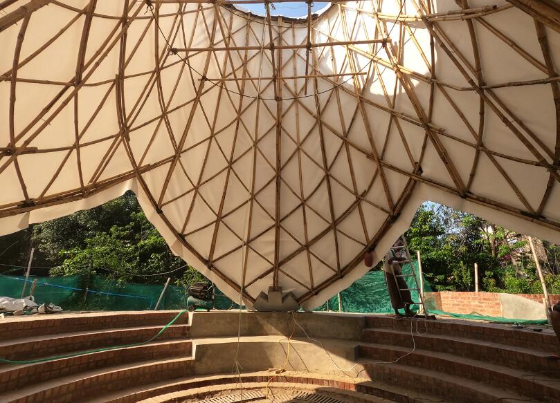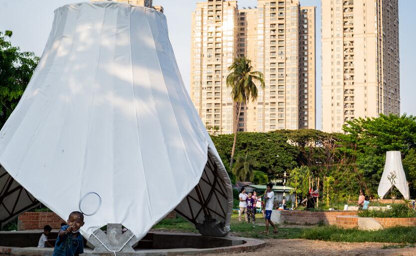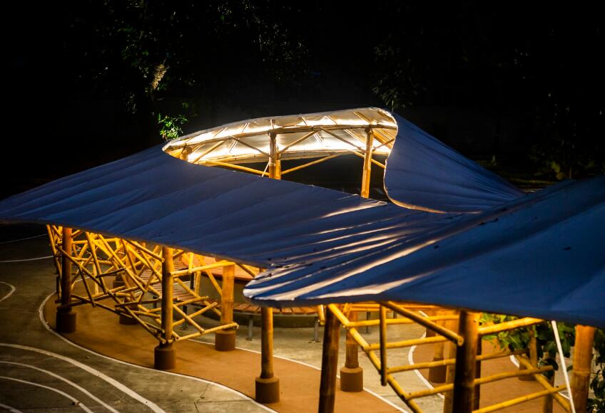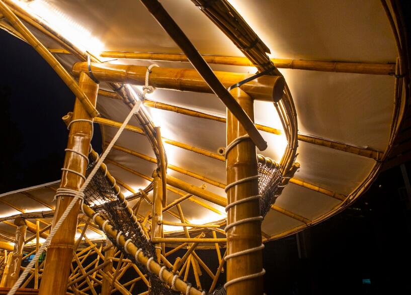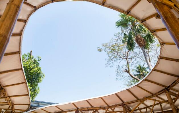 這個(gè)項(xiàng)目位于城市中心,并被實(shí)際建造出來,其目標(biāo)是向世界展示竹子作為一種碳足跡極低的生態(tài)材料在建筑業(yè)中的可能性。利用現(xiàn)代的竹子處理技術(shù)來建造大型的持久結(jié)構(gòu),此外,外圍護(hù)采用目前流行的新材料膜材來實(shí)現(xiàn),更凸顯其環(huán)保安全性能。