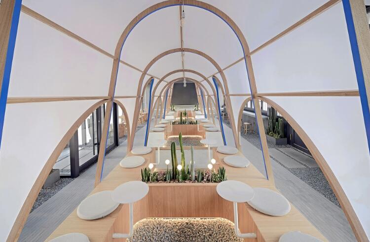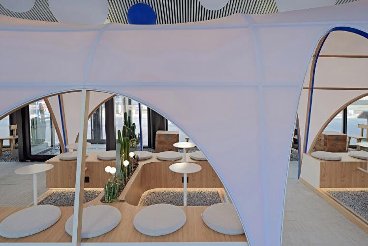 帳篷的最大特色在于其通透的弧線邊界,在視覺(jué)上具有獨(dú)特的視覺(jué)魅力,身處其中有一種置身戶外的松弛感。