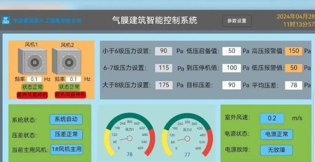 氣膜配套有全智能控制系統(tǒng),多個環(huán)境傳感器實時監(jiān)測室內(nèi)外氣壓、溫度、風(fēng)速,通過變頻設(shè)備、充氣風(fēng)機(jī)、備用能源等多個模塊之間自動高效協(xié)作,實時調(diào)整氣膜氣壓,保持氣膜一直處于安全、節(jié)能狀態(tài)運(yùn)行。
