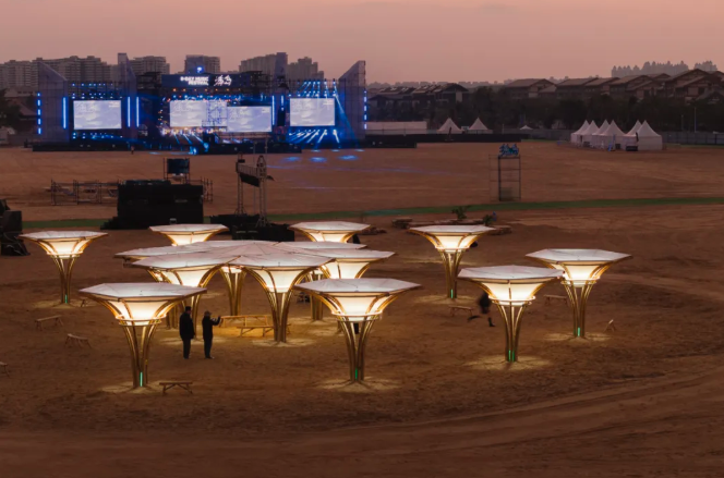 當(dāng)音樂(lè)節(jié)落幕,這些裝置將被拆解為獨(dú)立單元,可重組為新的藝術(shù)裝置場(chǎng)景,讓藝術(shù)擺脫一次性消耗的宿命,轉(zhuǎn)而成為可循環(huán)的建筑載體。