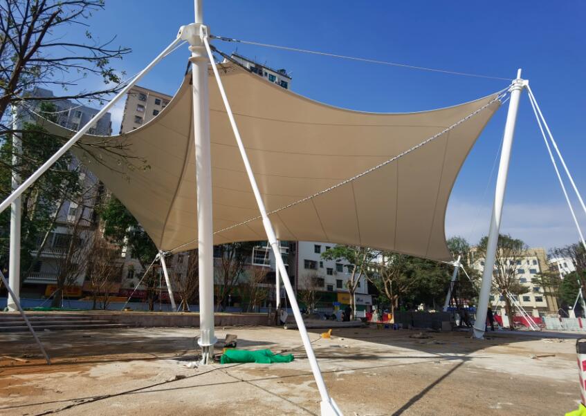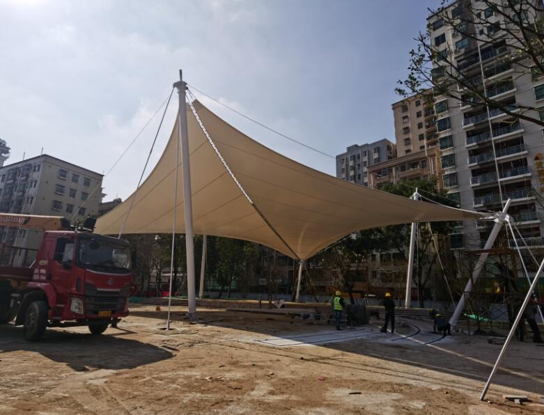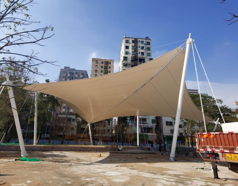 深圳寶安區(qū)廣場景觀膜結(jié)構(gòu)遮陽棚工程完工,該遮陽棚設(shè)計(jì)為經(jīng)典飛燕造型,整片張拉,簡潔大方,美觀兼實(shí)用,是居民休憩好去處。