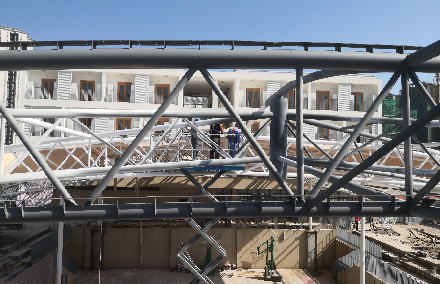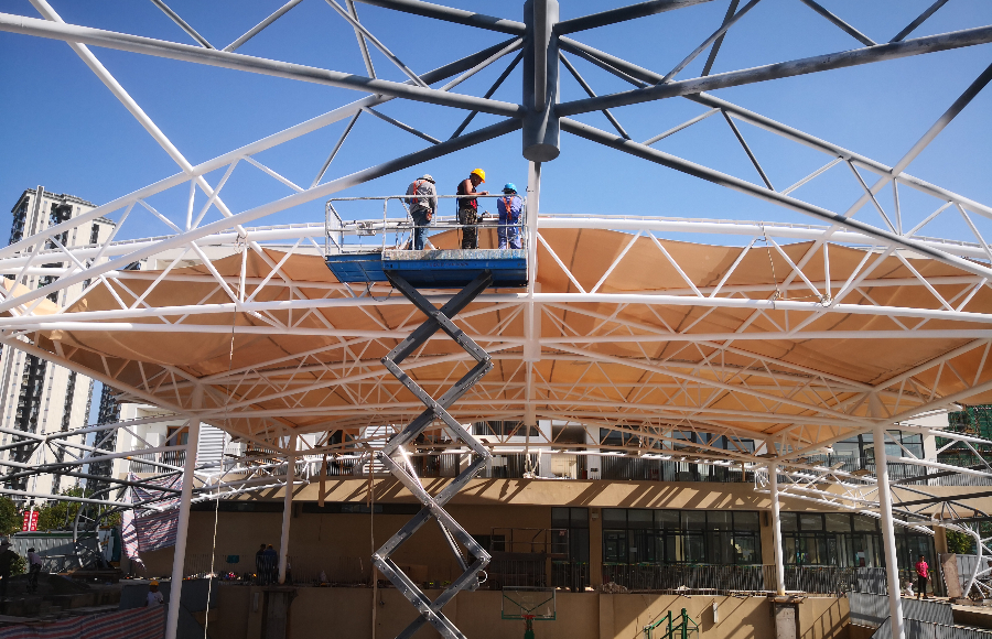 雙流二手車市場膜結(jié)構(gòu)工程施工進(jìn)展