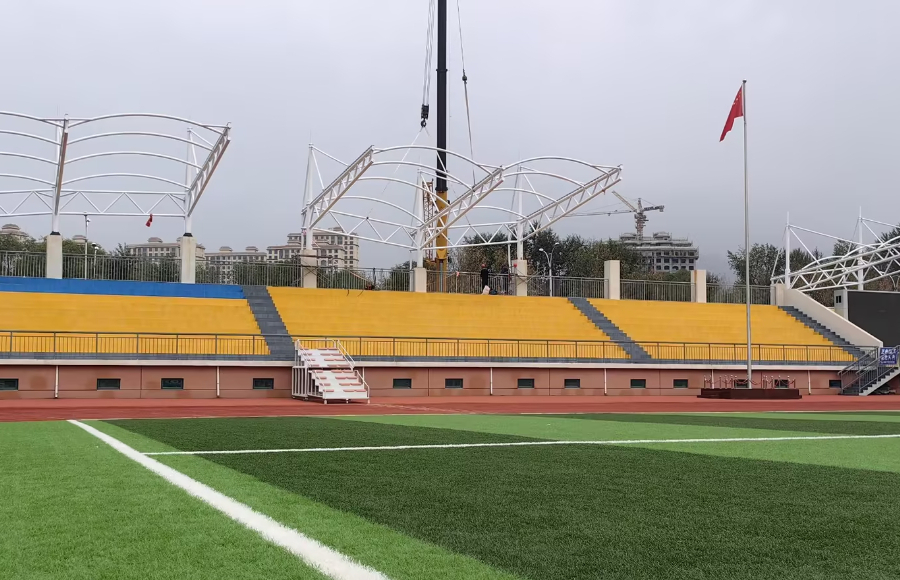 青海海東學(xué)校膜結(jié)構(gòu)看臺(tái)工程進(jìn)展